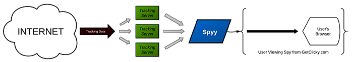 Clicky is almost 6 years old and hence was one of the first real-time web analytics platforms. Spy is an important part of that offering. Spy allows you to glimpse important information about active visitors on your website, as that information flows out of your visitors' browsers and into our system.