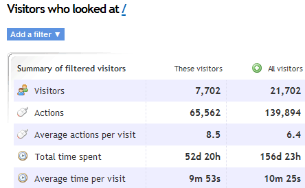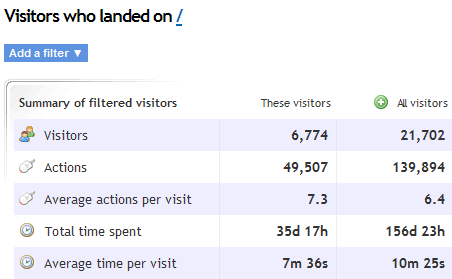 But now we can filter down to only visitors who actually began their visit on our homepage. These are who we really want to look at. This is more likely to be "new" visitors, as they wouldn't be coming from bookmarks to pages within our site or anything like that: