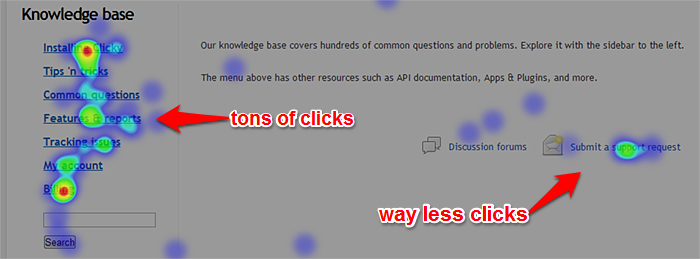 It's been especially insightful using our heatmap tracking to see what items people are most interested in on each page, and how many people are exploring the knowledge base rather than clicking the link to contact us.
